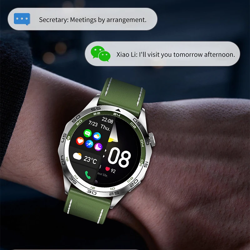 La montre intelligente pour hommes est équipée d’un système de contrôle d’accès NFC, d’un suivi de mouvement GPS et d’un écran AMOLED HD de 1.43 pouces toujours allumé pour afficher l’heure. Elle permet de surveiller la fréquence cardiaque, les appels Bluetooth et d’autres fonctions.