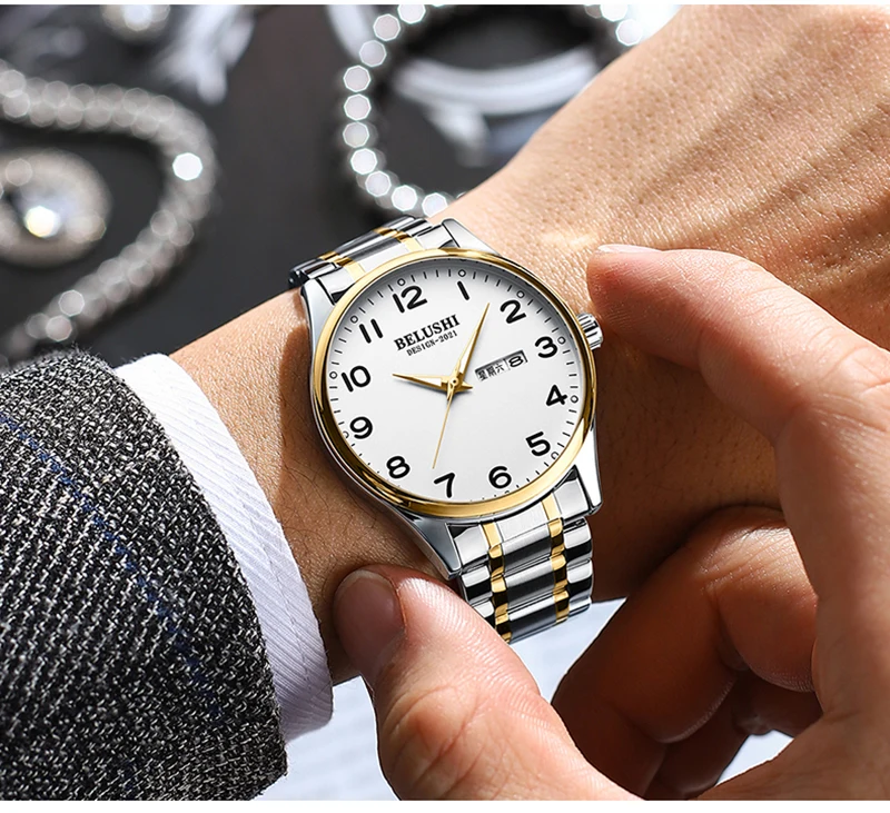 L’UTHAI-Montre-bracelet à quartz étanche pour hommes et femmes est une montre de couple à grand cadran. Elle dispose d’une étanchéité jusqu’à 30 mètres, ce qui permet de nager avec. Cependant, il est déconseillé de l’utiliser lors d’un bain chaud. Les fonctionnalités de cette montre incluent un affichage lumineux, un calendrier et un affichage hebdomadaire. Elle est conçue à la fois pour un usage professionnel et pour les loisirs. Son mouvement est assuré par un quartz, garantissant une précision de l’heure. Le miroir en verre renforcé minéral assure une grande résistance aux chocs. Le bracelet de montre est en acier inoxydable et la boucle papillon facilite son ajustement. La coque de la montre est en alliage, lui conférant une allure élégante. Le cadran a un diamètre de 38mm et une épaisseur de 10mm. La longueur du bracelet est de 23cm.