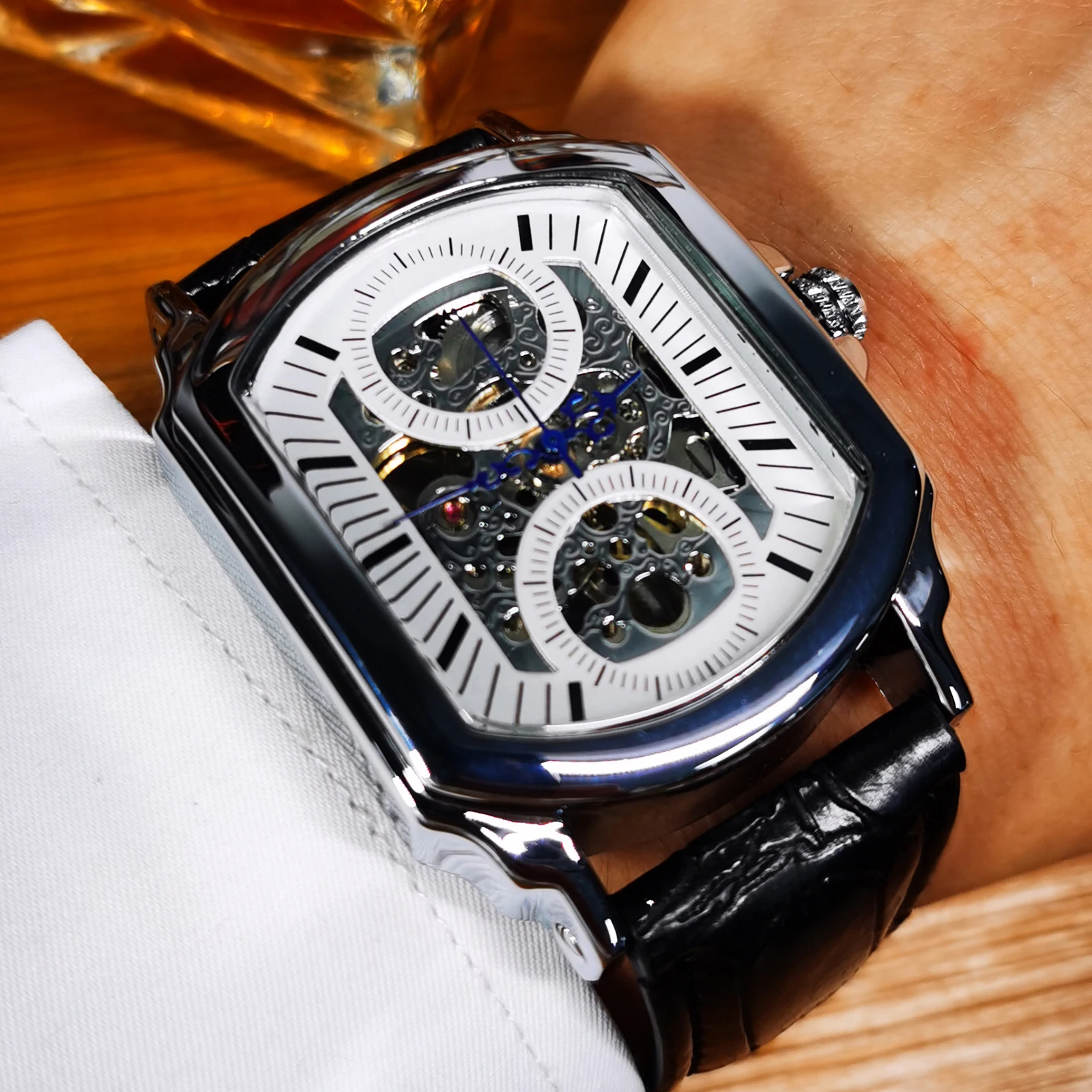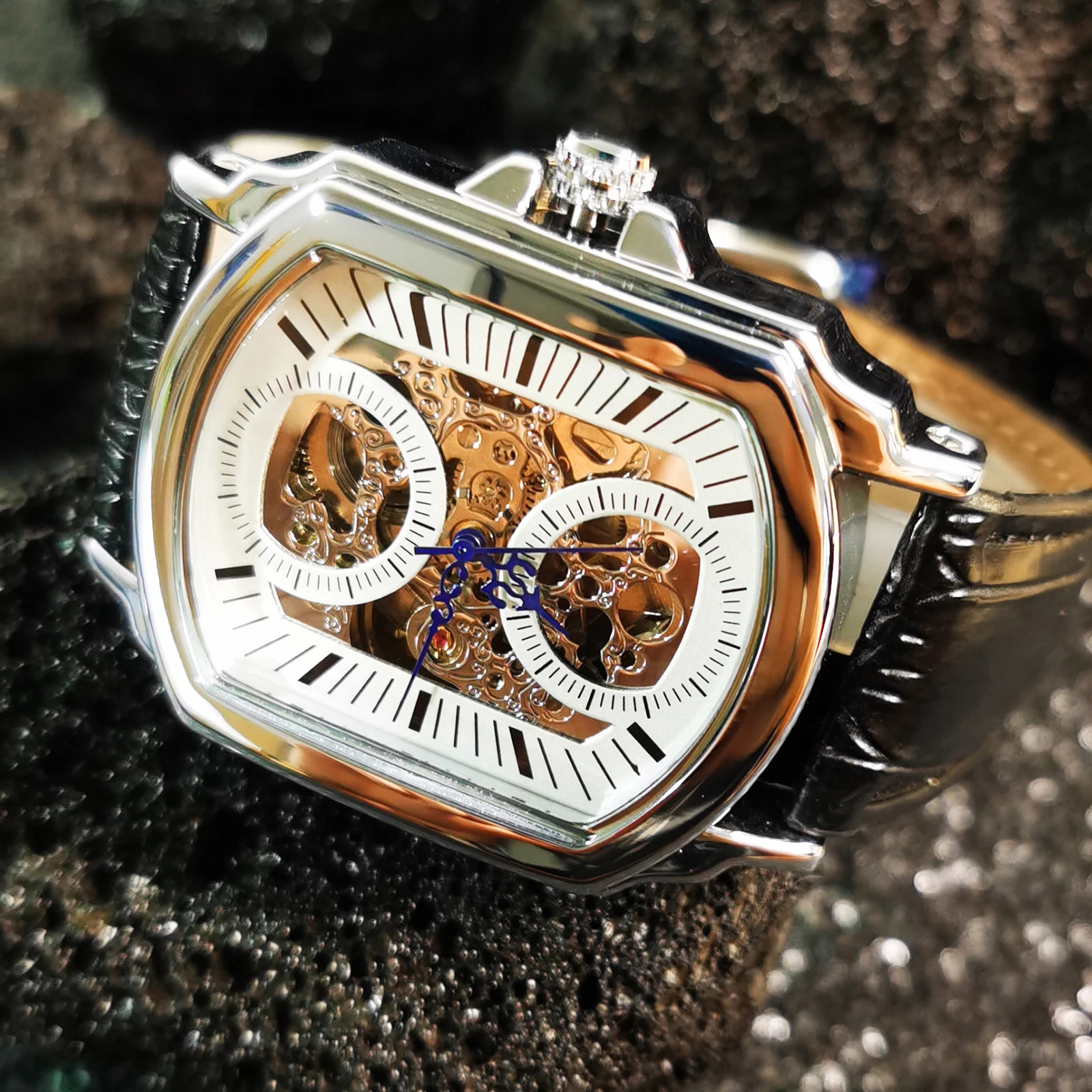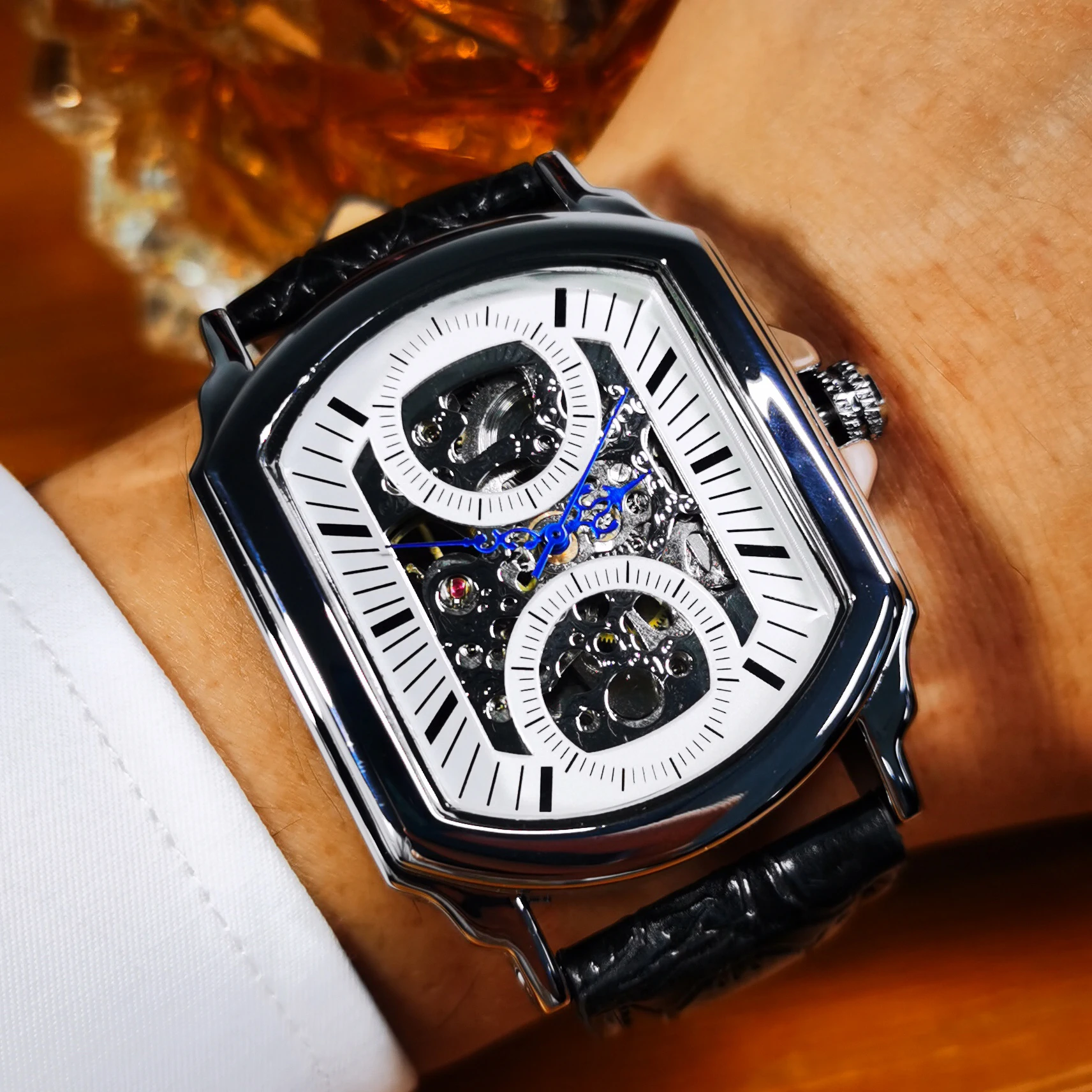 Le design rectangulaire de la montre WINNER est à la fois élégant et moderne. Son pointeur bleu ajoute une touche de couleur unique. Le bracelet en cuir de haute qualité est à la fois confortable et durable. En tant que marque de luxe, WINNER ne déçoit pas avec cette montre mécanique automatique pour homme.