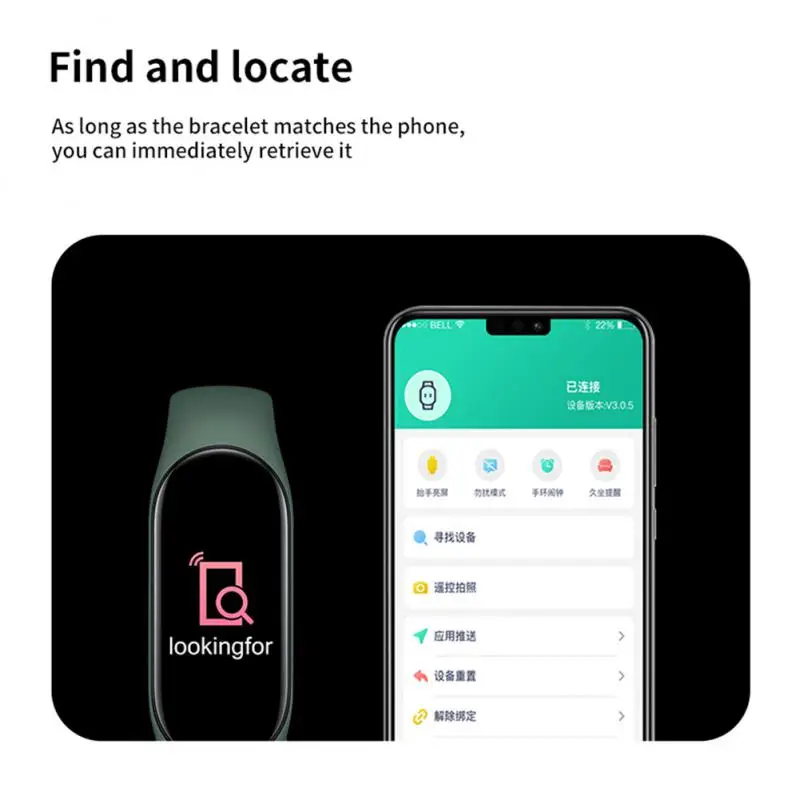 - Fonctions: prise de photo, surveillance de la fréquence cardiaque, mesure de la pression artérielle, divertissement social, appel Bluetooth, rappel intelligent, chaonb, selfie, chaonb télécommandé, surveillance du sommeil, détection d’oxygène sanguin